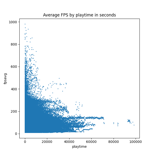 The above graph shows the average FPS of a player on the Y axis and the current session playtime on the X axis.