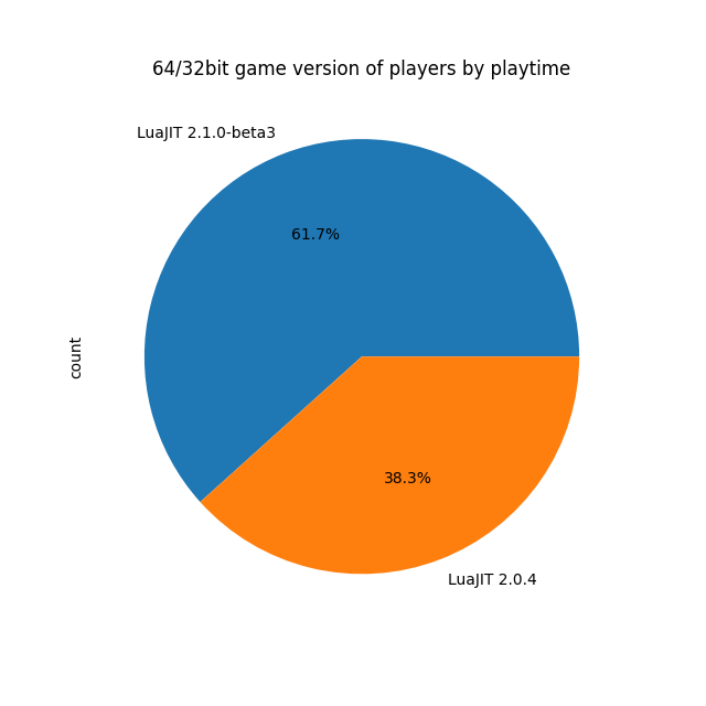 If we look at the above pie chart we can see that, by playtime, a lot more players use the 64bit version of Garry's Mod than the 32bit version.